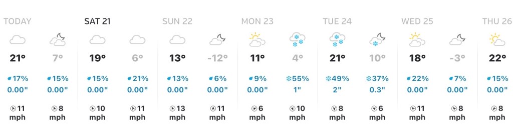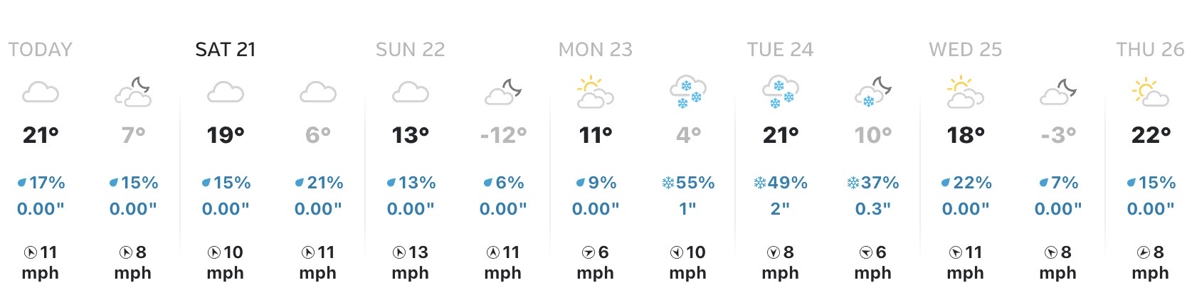 The upcoming weather forecast for the week does not, thankfully, include much more snow. Temperatures will be relatively mild so that you can get out to enjoy the bounty of our fresh snow.