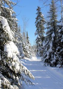 A trail to be avoided at the moment is the North-South Link. From the East Bearskin side, it is groomed to the point where the hill dramatically descends–and then the grooming stops. Long story, but at the moment we have been unable to get down the steep hill to the lake. It’s just as well, because with the wind we had today, a trail across the lake would have just disappeared. Choose another alternative if you want to head towards Flour Lake for now.