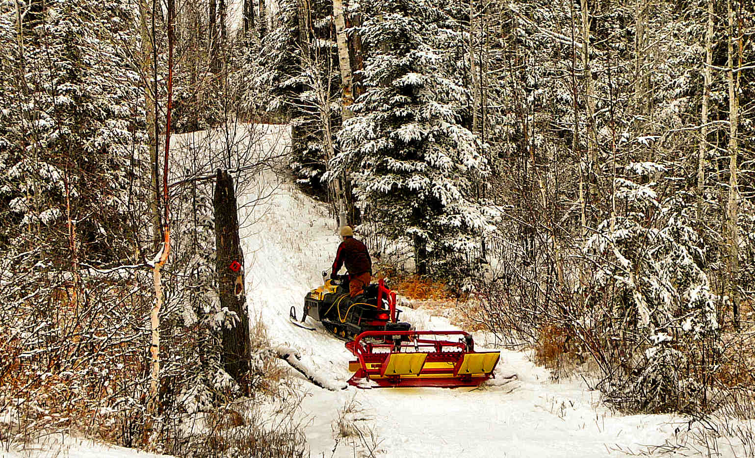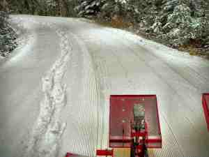 Andy took the Tidd Tech G2 out today on the Campground loop and made a nice corduroy surface. Perhaps it would be OK skiing with rock skis. It’s a start. We eagerly await the addition of more snow.