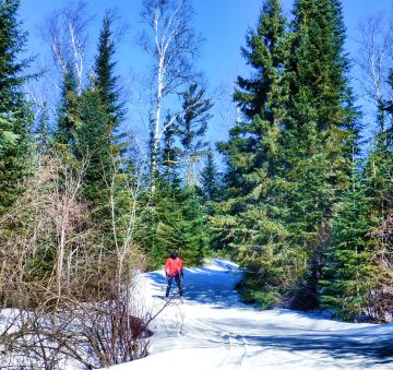 If you are a local resident coming to ski for the day, consider driving a little farther up the Gunflint Trail to our partner on the ski trail system, Golden Eagle Lodge. The Bearskin parking lot tends to be full by about 11 AM on weekends, while Golden Eagle often still has space. If you want lunch at Bearskin, just ski over and enjoy hot chocolate or chili — it gives you a nice little break midway through your day of skiing fun.