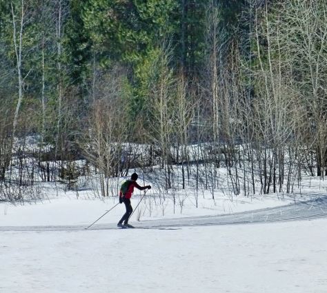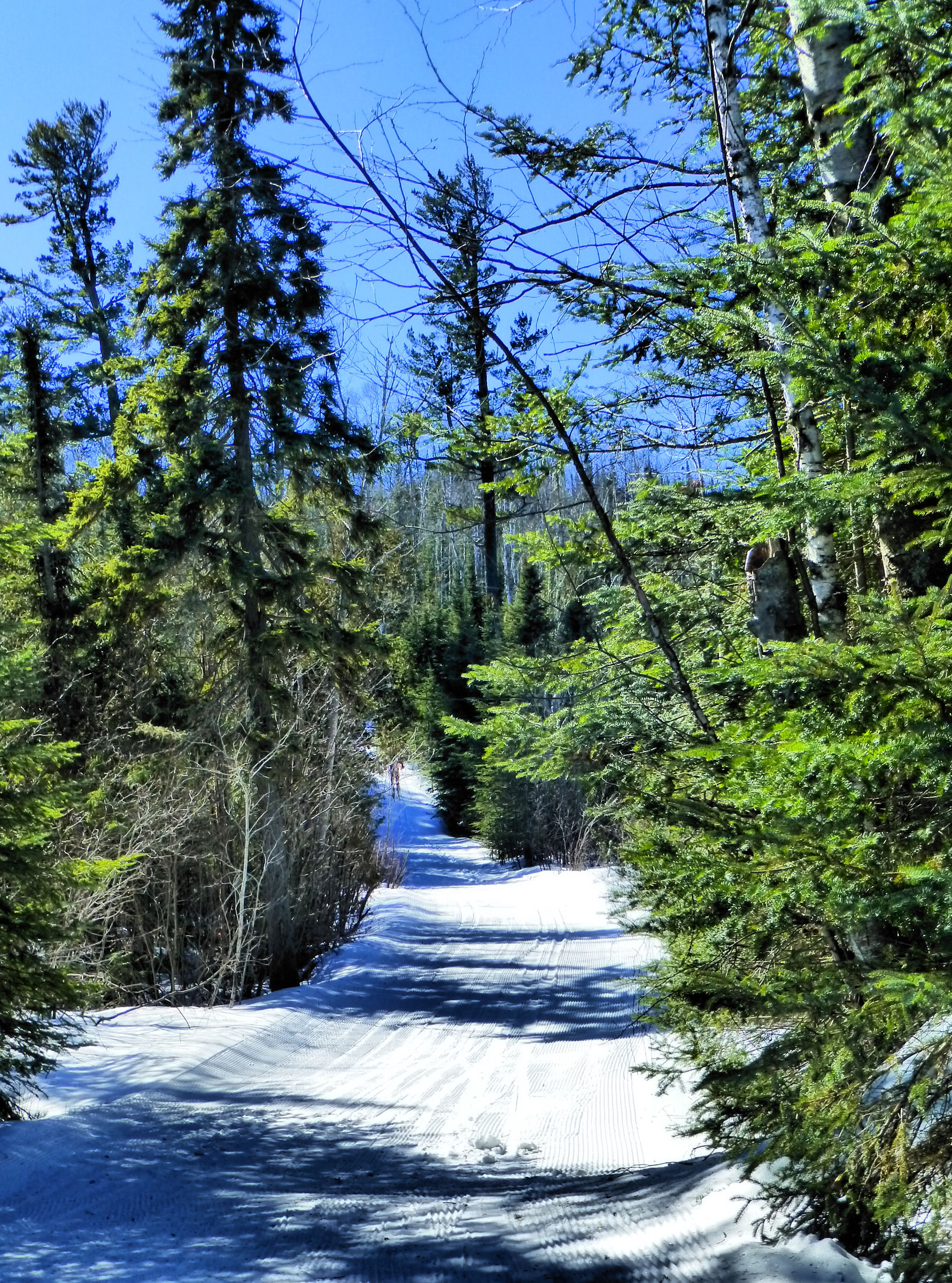 Expect spring skiing conditions; the trails are remarkably good, but they aren’t as fantastic as they were in February. In some places the tracks are better than in other spots. Sometimes it’s icy. Like all of Minnesota, we’ve had phenomenal winds all week so drifting appears in places on the trails. But we still have a good base on most of the trails, with no sign of the snow disappearing anytime soon. There is absolutely no sense of an impending spring up here, except for the longer daylight and brighter sun.
