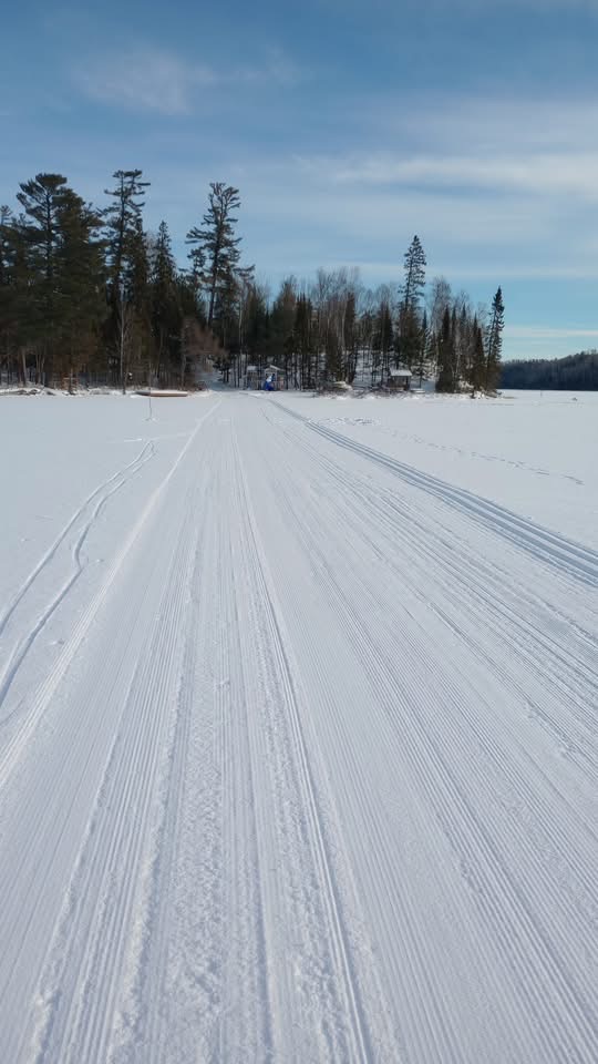 The trail across the lake to Bear Cub, Ox Cart, and Poplar Creek was groomed this morning and it looks great. Too soon to groom the lake trail going to the east — ice is forming slowly this winter and we are uncertain if it’s safe yet off our little bay. You can already easily access all the east-side trails directly from our parking lot to Summer Home Road, so the eastern lake crossing can wait.