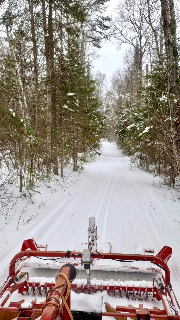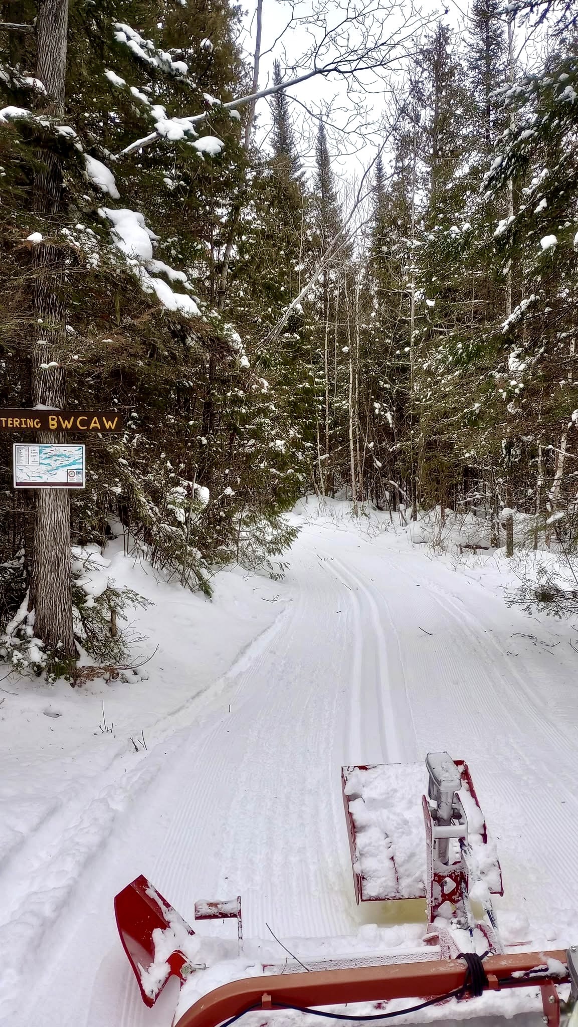 12.23.2024 BWCAW section groomed first time Posted on December 23, 2024 by Bearskin We groomed the BWCAW section of Logging Camp today. Because of the difficulties associated with trimming a trail in the BWCAW, it has a few more sticks poking through and is a bit lumpier than the rest of the system. Share this: Click to share on Facebook (Opens in new window) Facebook Click to share on X (Opens in new window) X Click to share on Reddit (Opens in new window) Reddit Like Loading... Related