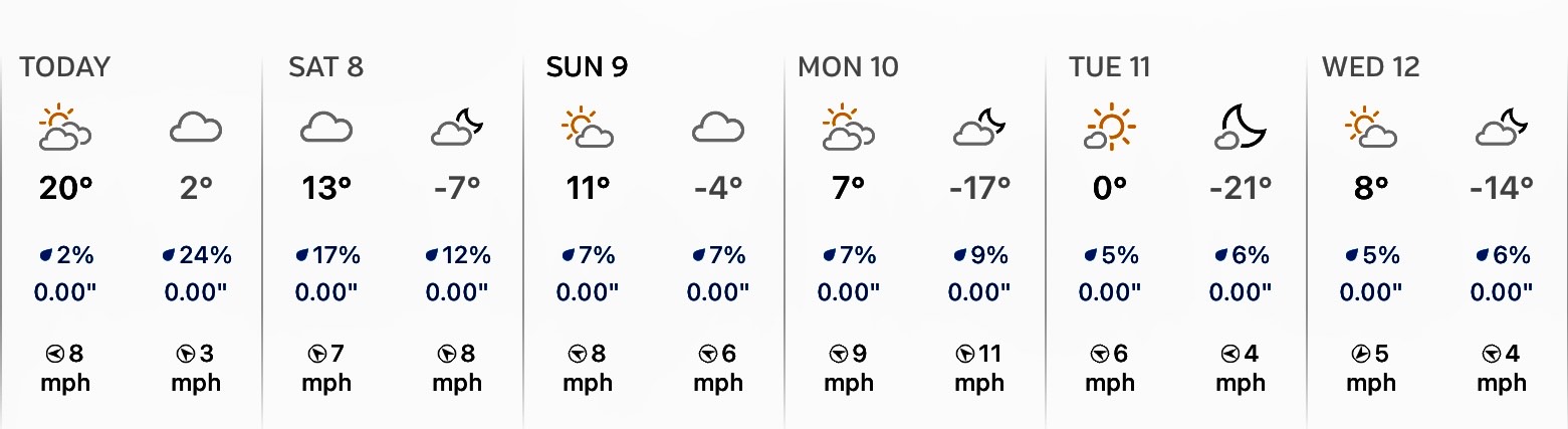Temperatures for the weekend ahead look fairly mild (for winter) and pleasant. We’ve had crazy, wild winds for a few days, but it looks like atmospheric conditions will calm down for the weekend.