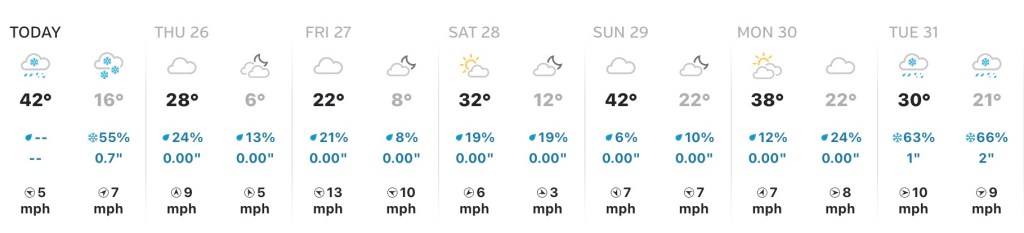 The Gunflint Trail still has a ridiculous amount of snow for late March. We had warm temps this week, then a bit of rain and even several inches of giant flakes Wednesday. Grooming on Wednesday was a complete bust on both sides — you know you’re done grooming when it’s raining on the Pisten Bully. But we have two days ahead of solid cold temperatures again. The groomers will be tilling and should be able to turn the icy spots back into the best snow.