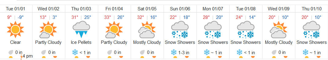 The forecast for the next 10 days is quite mild, not like a typical January at all.